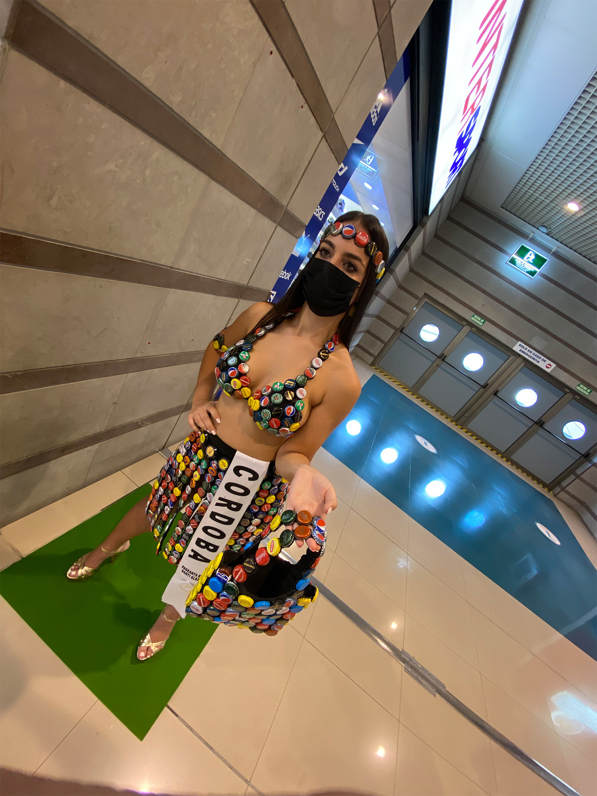Nuestros compañeros de Miss Earth Spain llevaron a cabo una exposición de vestidos de mujer realizados con materiales reciclables, una exhibición que contaba con atuendos fabricados con papel de periódico o hechos de bricks de leche, hasta pasar por vestidos efectuados con chapas de botellines.