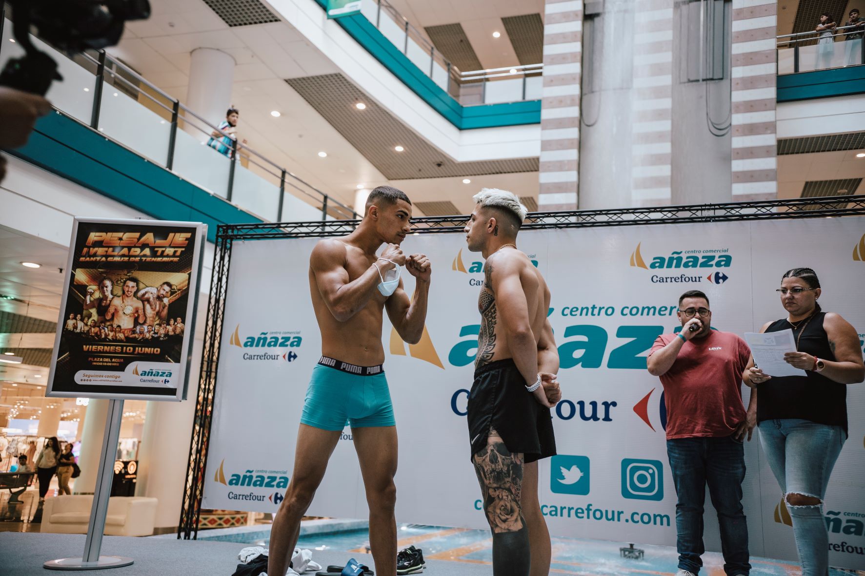 El pasado viernes 10 de junio compartimos en nuestro Centro Comercial Añaza Carrefour, la maravillosa velada de TRT para el pesaje del evento deportivo, este se celebró en nuestra Plaza del Agua y los competidores se vieron acompañados de nuestra maravillosa familia.
